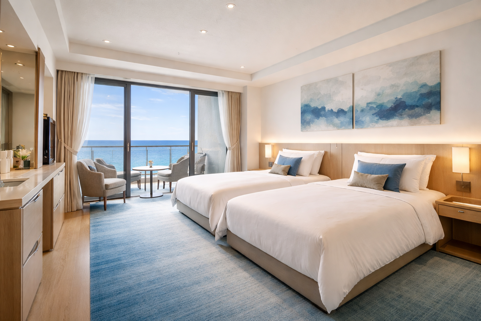 プールや大浴場の利用時間はチェックイン・アウトの時間に制限されることがあるため、事前にホテルの案内をご確認ください。 - 立地は丘の上 車移動が前提。徒歩観光にはやや不向きです。