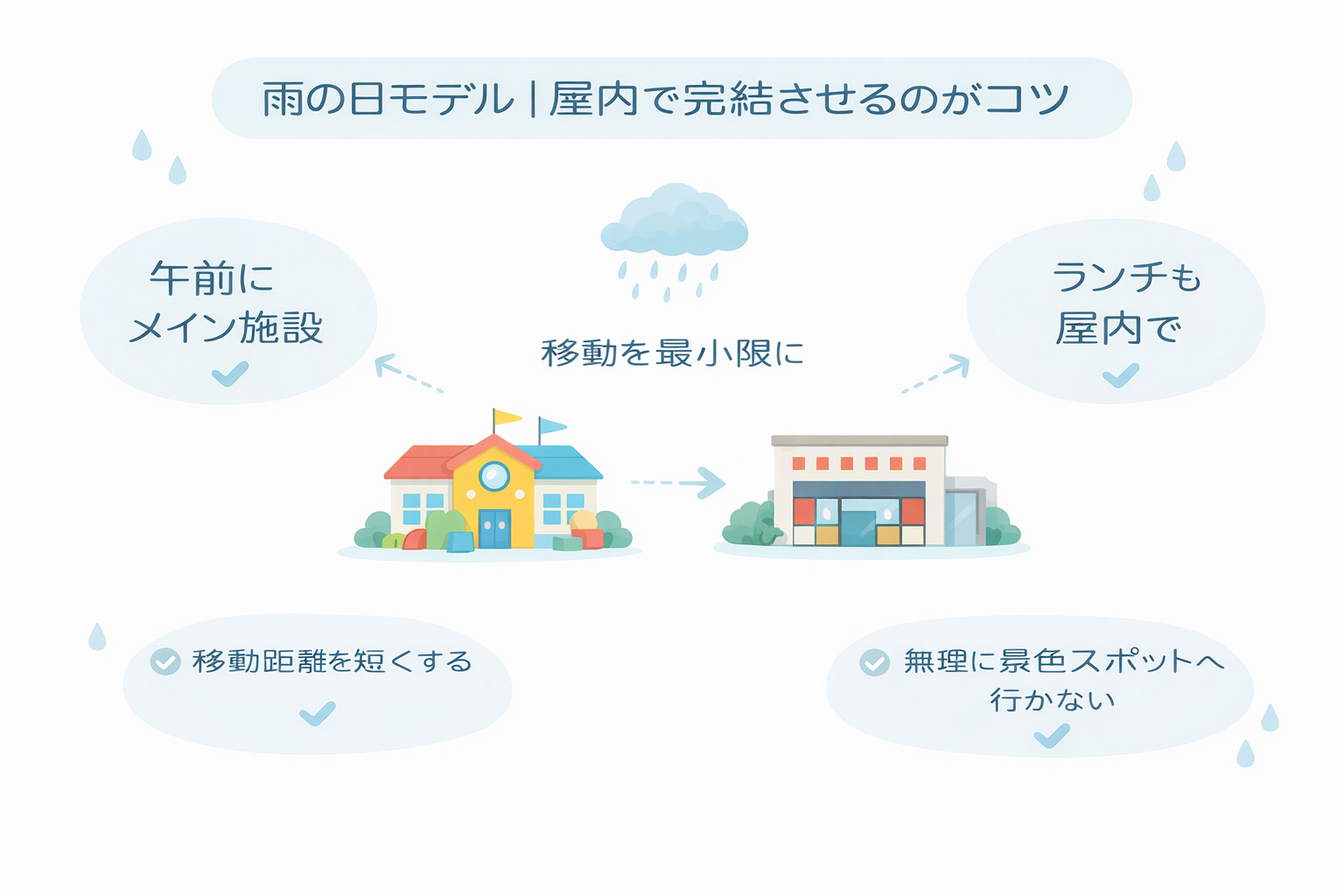 - 雨の日でも成立する代替プラン