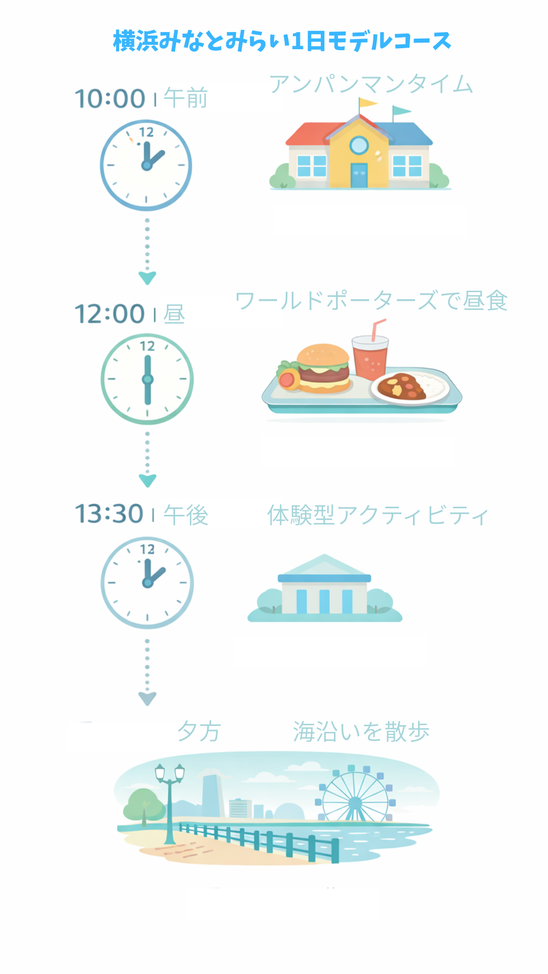 横浜みなとみらいは屋内完結できるエリアなので、焦らずシンプルに回るのがおすすめです。